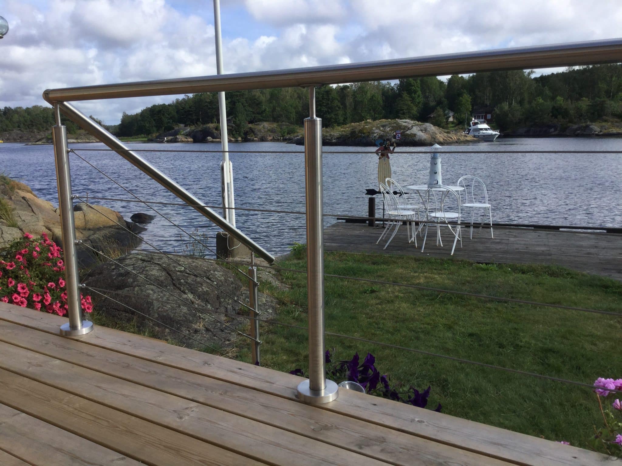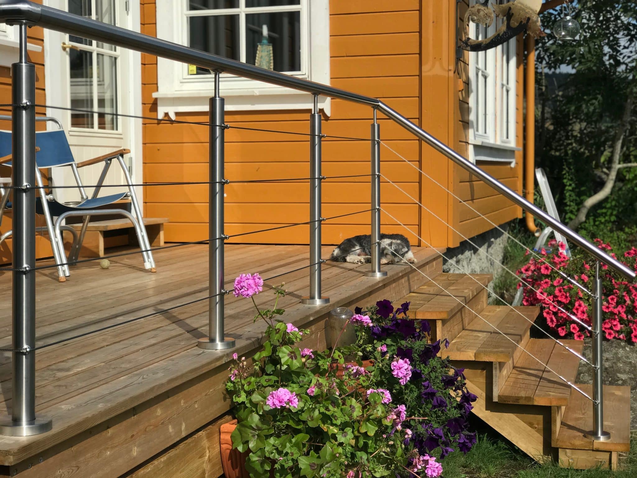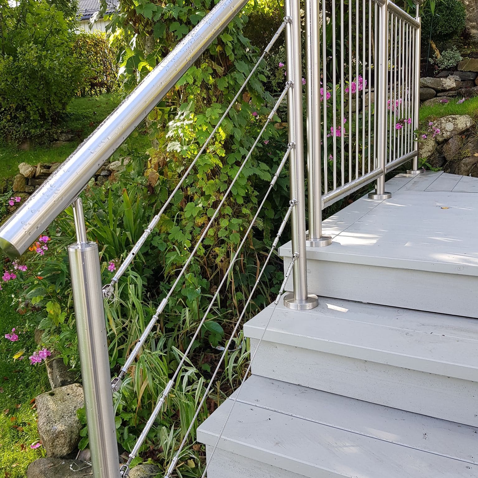 Ruostumattomasta teräksestä valmistettu vaijerikaide, joka luo merellisen ja ilmavan tunnelman ja sopii portaikon alaosasta aina ylimmälle porrasaskelmalle asti. Saat vakaan porraskaiteen, joka on kuitenkin niin siro, että se sulautuu kaikkiin ympäristöihin – niin sisä- kuin ulkotiloissa.